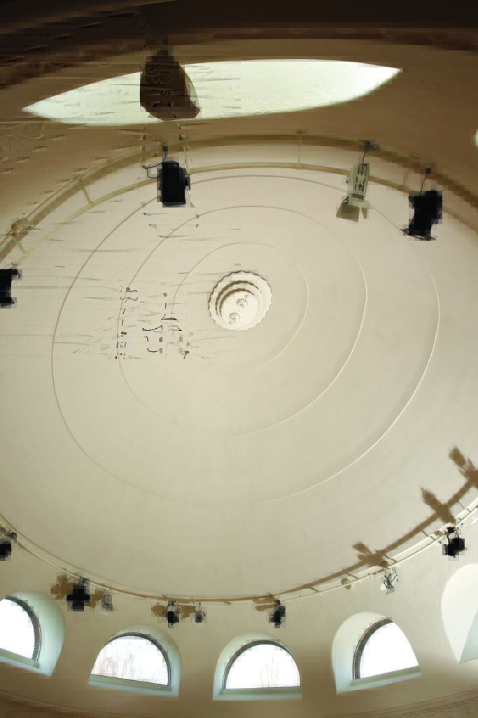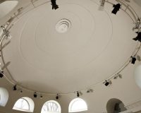 Løsningen var et fuldpudset BASWAphon akustikloft, som ganske vist sænker loftet få centimeter, men som bevarer kuplens og rummets fremtoning 100%.